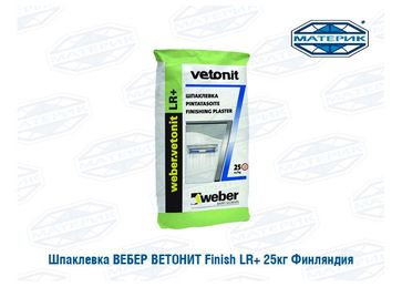 - Шпаклевка для стен потолков в сухих помещения полимерная Вебер Ветонит Finish-LR+ Финляндия по выгодной цене 588 р. руб.;