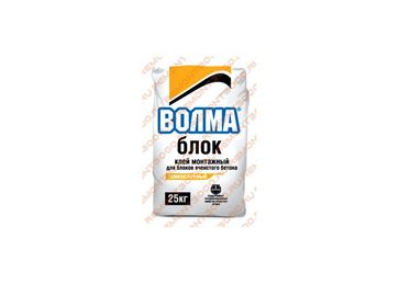 “ВОЛМА-Блок” - монтажный клей, специально разработанный для тонкослойного монтажа блоков ячеистого бетона с целью предотвратить появление мостиков холода в местах стыковочных швов. Тем самым клей поддерживает теплоизоляционные свойства ячеистого бетона.