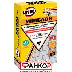 - "Юнис Униблок" (Кладочно-монтажный клей), 25 кг (48 шт под) по выгодной цене 210 р. руб.;