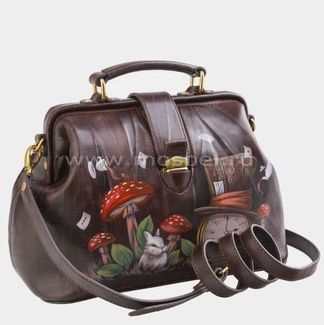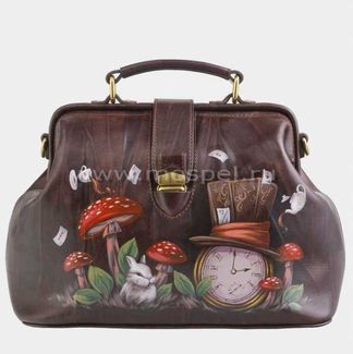 Женская сумка саквояж из натуральной кожи Фрейм Медиум «Алиса Часы»:одно отделениевнутри два кармана для мелких предметовдлинный ремень через плечокороткая ручка Сумка «Алиса Часы» из коллекции Premium бренда Alexander TS - настоящее произведение искусства. Картинка на сумке создана художником при помощи специальной техники выжигания по коже и росписи красками. Каждый рисунок наносится на кожу вручную, что обеспечивает его неповторимость. В нашем магазине можно купить как готовую сумку, так и заказать сумку индивидуально. При одновременном заказе комплекта аксессуаров, например портмоне + сумка, предполагается дополнительная скидка. None Возможен самовывоз. Есть доставка.