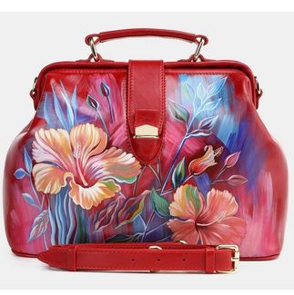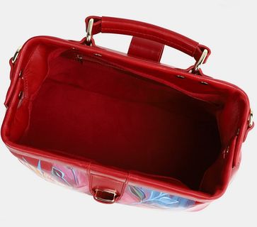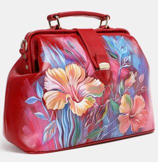 Женская сумка саквояж из красной кожи «Цветы»:одно отделениевнутри два кармана для мелких предметовдлинный ремень через плечокороткая ручка Сумка «Цветы» бренда Alexander TS - настоящее произведение искусства. Картинка на сумке создана художником при помощи специальной техники выжигания по коже и росписи красками. Каждый рисунок наносится на кожу вручную, что обеспечивает его неповторимость. В нашем магазине можно купить как готовую сумку, так и заказать сумку индивидуально. При одновременном заказе комплекта аксессуаров, например портмоне + сумка, предполагается дополнительная скидка. None Возможен самовывоз. Есть доставка.