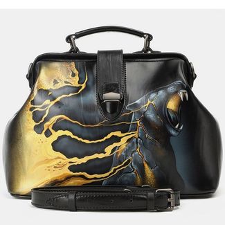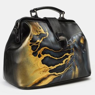 Женская сумка саквояж из натуральной кожи с росписью «Нефть золото»:одно отделениевнутри два кармана для мелких предметовдлинный ремень через плечокороткая ручка Сумка «Нефть золото» из коллекции Животные бренда Alexander TS - настоящее произведение искусства. Картинка на сумке создана художником при помощи специальной техники выжигания по коже и росписи красками. Каждый рисунок наносится на кожу вручную, что обеспечивает его неповторимость. В нашем магазине можно купить как готовую сумку, так и заказать сумку индивидуально. При одновременном заказе комплекта аксессуаров, например портмоне + сумка, предполагается дополнительная скидка. None Возможен самовывоз. Есть доставка.