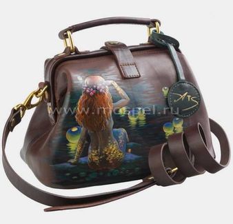 Маленькая женская сумка саквояж из натуральной кожи «Русалка на кувшинке»:одно отделениевнутри два кармана для мелких предметовдлинный ремень через плечокороткая ручка Сумка «Русалка на кувшинке» из коллекции Premium бренда Alexander TS - настоящее произведение искусства. Картинка на сумке создана художником при помощи специальной техники выжигания по коже и росписи красками. Каждый рисунок наносится на кожу вручную, что обеспечивает его неповторимость. В нашем магазине можно купить как готовую сумку, так и заказать сумку индивидуально. При одновременном заказе комплекта аксессуаров, например портмоне + сумка, предполагается дополнительная скидка. None Возможен самовывоз. Есть доставка.
