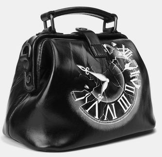 Женская сумка саквояж из черной кожи Хронос:одно отделениевнутри два кармана для мелких предметовдлинный ремень через плечокороткая ручка Сумка Хронос бренда Alexander TS - настоящее произведение искусства. Картинка на сумке создана художником при помощи специальной техники выжигания по коже и росписи красками. Каждый рисунок наносится на кожу вручную, что обеспечивает его неповторимость. В нашем магазине можно купить как готовую сумку, так и заказать сумку индивидуально. None Возможен самовывоз. Есть доставка.