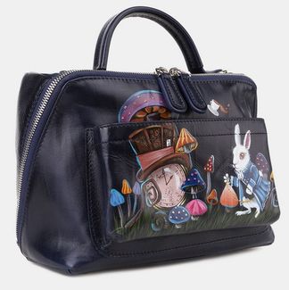 Женская сумка из синей кожи "W0038 Blue Алиса":одно отделениеснаружи, спереди и сзади, карманы на молнияхдлинный cьемный ремень через плечокороткая ручка Сумки бренда Alexander TS - настоящее произведение искусства. Картинка на сумке создана художником при помощи специальной техники выжигания по коже и росписи красками. Каждый рисунок наносится на кожу вручную, что обеспечивает его неповторимость. В нашем магазине можно купить как готовую сумку, так и заказать сумку индивидуально. None Возможен самовывоз. Есть доставка.