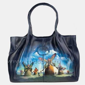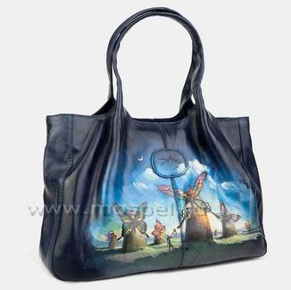 Женская сумка из натуральной кожи W0032 «Мельницы»»:два отделение плюсотделение перегородка на молниивнутри карманы для мелких предметовкарман на молнии сзади Шикарная сумка W0032 «Мельницы» из синей кожи коллекция Premium бренда Alexander TS - настоящее произведение искусства. Картинка на сумке создана художником при помощи специальной техники выжигания по коже и росписи красками. Каждый рисунок наносится на кожу вручную, что обеспечивает его неповторимость. В нашем магазине можно купить как готовую сумку, так и заказать сумку индивидуально. None Возможен самовывоз. Есть доставка.