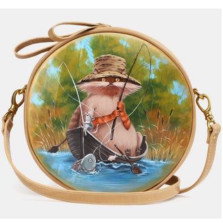 Женская сумка через плечо из бежевой кожи «Удачная рыбалка»:одно отделениевнутри два кармана для мелких предметовдлинный ремень через плечокороткая ручка Сумка «Удачная рыбалка» бренда Alexander TS - настоящее произведение искусства. Картинка на сумке создана художником при помощи специальной техники выжигания по коже и росписи красками. Каждый рисунок наносится на кожу вручную, что обеспечивает его неповторимость. В нашем магазине можно купить как готовую сумку, так и заказать сумку индивидуально. При одновременном заказе комплекта аксессуаров, например портмоне + сумка, предполагается дополнительная скидка. None Возможен самовывоз. Есть доставка.