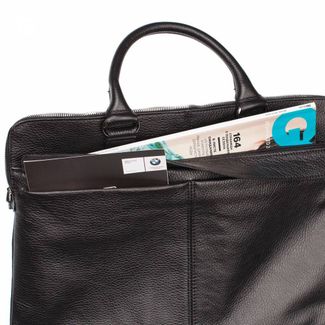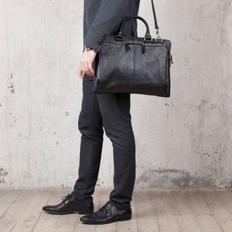 Сумка для документов Brook Black изготовлена из качественной натуральной кожи, природный рисунок которой притягивает взгляды и побуждает желание прикоснуться к аксессуару. Очень стильное изделие, которое обязательно придется по вкусу всем без исключения мужчинам, разбирающимся в качественных сумках и знающим цену таким изделиям. Ведь без наличия дорогой и безукоризненной сумки невозможно создать полноценный деловой образ. Одно основное отделение, отделение. Внутри: два кармана на молнии и два открытых кармана, отсеки для ручек. Снаружи: два кармана на молнии на лицевой и обратной сторонах, а также два скрытых кармана под клапаном на обратной стороне сумки. None Возможен самовывоз. Есть доставка.