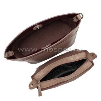 Кожаная женская сумка с широким ремнем через плечо Grindell Taupe.Внутри: съемная сумка меньшего размера,карман на молнии и два открытых кармана.Снаружи: два открытых кармана спереди и сзади.Два ремня, длиной 67см и 91-107см. Сумка сшита из серо-коричневой кожи с элементами отделки из кожи бордового цвета. None Возможен самовывоз. Есть доставка.