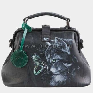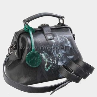 Маленькая женская сумка саквояж из натуральной кожи Фрейм «Новое знакомство»:одно отделениевнутри два кармана для мелких предметовдлинный ремень через плечокороткая ручка Сумка «Новое знакомство» из коллекции Premium бренда Alexander TS - настоящее произведение искусства. Картинка на сумке создана художником при помощи специальной техники выжигания по коже и росписи красками. Каждый рисунок наносится на кожу вручную, что обеспечивает его неповторимость. В нашем магазине можно купить как готовую сумку, так и заказать сумку индивидуально. При одновременном заказе комплекта аксессуаров, например портмоне + сумка, предполагается дополнительная скидка. None Возможен самовывоз. Есть доставка.