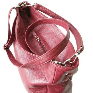 Вместительная сумка-мешок 3634 из бордовой кожи :застежка молниявнутри карман на молнии и маленькие кармашкикарман на молнии снаружиполудлинная ручка длинной 34смдлинный ремень 140см В нашем интернет-магазине женских сумок можно купить как готовое изделие так и заказать сумку индивидуально. Оператор интернет-магазина поможет Вам выбрать цвет и фактуру кожи для заказа. None Возможен самовывоз. Есть доставка.