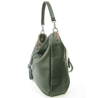 Вместительная сумка-мешок KSK 3634 из зеленой кожи с отделкой из кожи под питона :застежка молниявнутри карман на молнии и маленькие кармашкикарман на молнии снаружиполудлинная ручка длинной 34смдлинный ремень 140см В нашем интернет-магазине женских сумок можно купить как готовое изделие так и заказать сумку индивидуально. Оператор интернет-магазина поможет Вам выбрать цвет и фактуру кожи для заказа. None Возможен самовывоз. Есть доставка.