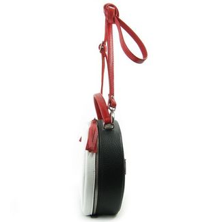 Круглая женская сумка с короткой и длинной ручками 8223 бело-красно-черная:застежка молнияодно отделениекарман на молнии сзадидлинный ремень 130см В нашем интернет-магазине женских сумок можно купить как готовое изделие так и заказать сумку индивидуально. Оператор интернет магазина поможет Вам выбрать цвет и фактуру кожи для заказа. None Возможен самовывоз. Есть доставка.