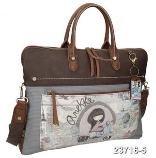 Стильная, практичная сумка-папка для документов, ноутбука с регулируемым плечевым ремешком и круглыми ручками.Идеальна для деловых женщин или модных студенток. Состав: ткань и искусственная кожа Внутри: ткань с мотивами старинной карты, карман Размер: 40x28x2,5