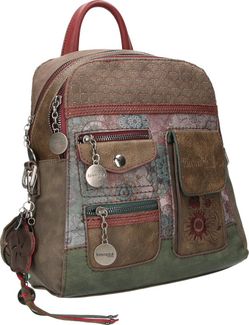 многоцветный (коричневый, зеленый фиолетовый) Материал: искусственная кожа, мягкий винил. Размеры рюкзака: 30x26x13 см. Сумка имеет один большой отсек внутри и карман на молнии.