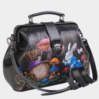 Женская сумка саквояж из натуральной кожи Фрейм Медиум «Алиса»:одно отделениевнутри два кармана для мелких предметовдлинный ремень через плечокороткая ручка Сумка «Алиса» из коллекции Premium бренда Alexander TS - настоящее произведение искусства. Картинка на сумке создана художником при помощи специальной техники выжигания по коже и росписи красками. Каждый рисунок наносится на кожу вручную, что обеспечивает его неповторимость. В нашем магазине можно купить как готовую сумку, так и заказать сумку индивидуально. При одновременном заказе комплекта аксессуаров, например портмоне + сумка, предполагается дополнительная скидка. None Возможен самовывоз. Есть доставка.