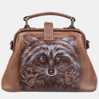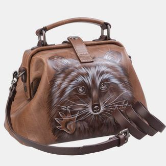 Женская сумка саквояж из натуральной кожи «Енот»бежевая:одно отделениевнутри два кармана для мелких предметовдлинный ремень через плечокороткая ручка Сумка «Енот» из коллекции Premium бренда Alexander TS - настоящее произведение искусства. Картинка на сумке создана художником при помощи специальной техники выжигания по коже и росписи красками. Каждый рисунок наносится на кожу вручную, что обеспечивает его неповторимость. В нашем магазине можно купить как готовую сумку, так и заказать сумку индивидуально. None Возможен самовывоз. Есть доставка.