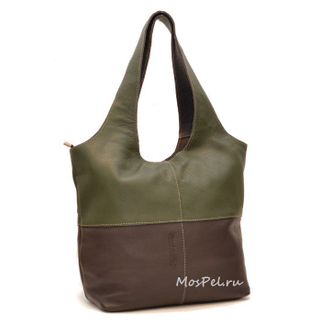 Закажите Studio KSK Вместительная мягкая сумка женская 3051 оливково- коричневая у компании Московская Пеллетерия в России на портале Alloy: