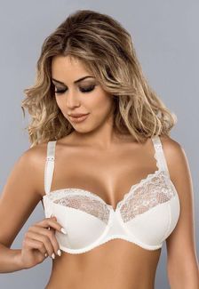Очаровательный бюстгальтер для кормящих мам Gaia Mama 523 нежного и невинного белого цвета. Уплотнённые поролоном чашки на косточках скомбинированы из гладкой ткани белого цвета и великолепного ажурного кружева с цветочными узорами. Внутренняя поверхность чашек выстлана приятной для чувствительной кожи груди хлопчатобумажной тканью. Боковые части модели выполнены из вискозы. Удобные бретели регулируются по длине. Сзади находится застёжка на 2 или 3 крючка, оснащённая трёхуровневой регуляцией. Кормящая мама может одной рукой легко отстегнуть чашку и, таким образом, в любое время обеспечить малышу доступ к его любимому лакомству. Состав: Полиамид 56% Полиэстер 20% Эластан 12% Хлопок 9% Полиуретан... Необходима предоплата Страна производства: Польша