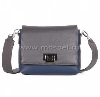 Женская сумочка из натуральной кожи Giorgio Ferretti 201754 сине-серая закрывается клапаном на металлическом замочке 1 отделение с кармашком на молнии карман на молнии сзади широкий съемный плечевой ремень None Возможен самовывоз.