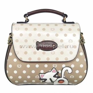 Мини-сумочка Sammao из экокожи "Бежевый горохи". внутри одно отделение два открытых кармашка и кармашек на молнии карман на молнии снаружи сзади сверху клапан на магните короткая ручка красвый ремень через плечо, часть которого цепочка Современные технологии позволяют делать экологичные и высококачественные материалы, такие как экокожа. Экокожа отличается от обычных заменителей своим составом - это натуральные волокна кожи и полиуретан, что делает изделия недорогими по... None Возможен самовывоз.