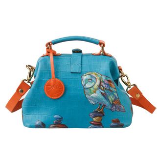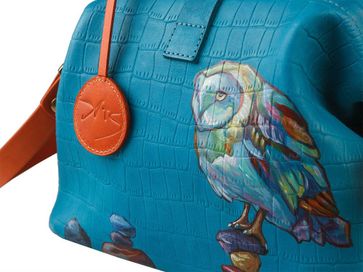 Женская сумка саквояж из голубой кожи Даймондс: одно отделение внутри два кармана для мелких предметов длинный ремень через плечо короткая ручка Сумка Даймондс из коллекции Premium бренда Alexander TS - настоящее произведение искусства. Картинка на сумке создана художником при помощи специальной техники выжигания по коже и росписи красками. Каждый рисунок наносится на кожу вручную, что обеспечивает его неповторимость. В нашем магазине можно купить как готовую сумку, так и заказать... None Возможен самовывоз.