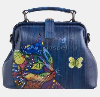 Маленькая женская сумка саквояж из натуральной кожи «Кот»: одно отделение внутри два кармана для мелких предметов длинный ремень через плечо короткая ручка Сумка «Кот» из коллекции Premium бренда Alexander TS - настоящее произведение искусства. Картинка на сумке создана художником при помощи специальной техники выжигания по коже и росписи красками. Каждый рисунок наносится на кожу вручную, что обеспечивает его неповторимость. В нашем магазине можно купить как готовую сумку, так и... None Возможен самовывоз.