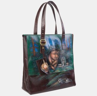 Женская кожаная сумка-шоппер «Ежик в Тумане»: одно отделение карманы на молниях внутри и снаружи полудлинные ручки Сумка-шоппер «Ежик в Тумане» бренда Alexander TS - настоящее произведение искусства. Изображение создано художником при помощи специальной техники выжигания и росписи по коже. Каждый рисунок наносится на кожу вручную, что обеспечивает его индивидуальность. В нашем магазине можно купить как готовое изделие, так и сделать индивидуальный заказ. None Возможен самовывоз.