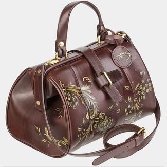 Женская сумка-саквояж из натуральной кожи Иль де Франс «Золотая Капитель»: одно отделение внутри два кармана для мелких предметов съемный ремень через плечо короткая ручка Женский саквояж из коллекции Premium бренда Alexander TS - 100% гарантия качества. Сшит из кожи растительного дубления. Красивая фурнитура, отлично сочетающаяся с цветом кожи. Изображение создано художником при помощи специальной техники выжигания и росписи по коже. Каждый рисунок наносится на кожу вручную, что... None Возможен самовывоз.