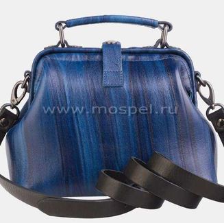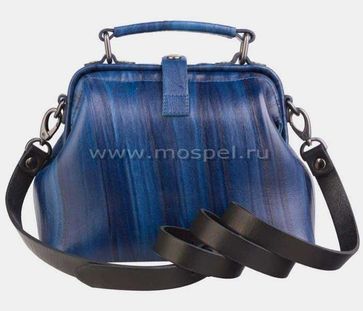 Маленькая женская кожаная сумка-саквояж W0013 синяя: одно отделение внутри карманы для мелких предметов длинный ремень и короткая ручка застежка на саквояжной планке None Возможен самовывоз.