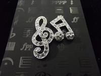 Брошь Скрипичный ключ и Нота 16-я 3,6см.в стразах серебро