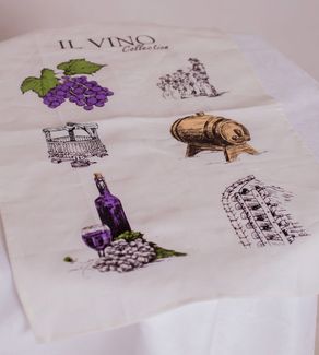 Сувенирное белое полотенце изо льна с надписью "IL VINO" и принтом "Виноград" Оптом от 5000 ₽ | Розница в СП Возможен самовывоз. Есть доставка.