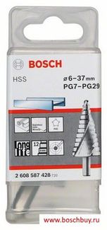 - Bosch HSS Ступенчатое сверло 6-37 мм 12 ступеней (2608587428 , 2.608.587.428) по выгодной цене 5 174 р. руб.;