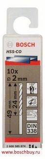 - Bosch Набор 10 HSS-Co сверл 2 мм DIN 338 (2608585874 , 2.608.585.874) по выгодной цене 448 р. руб.;