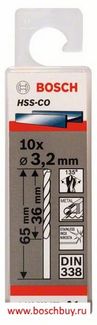 - Bosch Набор 10 HSS-Co сверл 3,2 мм DIN 338 (2608585877 , 2.608.585.877) в каталоге Сверла в России;