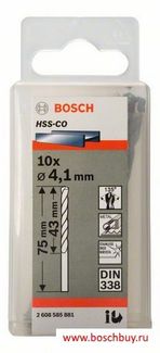 - Bosch Набор 10 HSS-Co сверл 4,1 мм DIN 338 (2608585881 , 2.608.585.881) по выгодной цене 755 р. руб.;