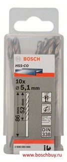 - Bosch Набор 10 HSS-Co сверл 5,1 мм DIN 338 (2608585886 , 2.608.585.886) по выгодной цене 1 030 р. руб.;