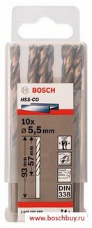 - Bosch Набор 10 HSS-Co сверл 5,5 мм DIN 338 (2608585888 , 2.608.585.888) по выгодной цене 1 025 р. руб.;