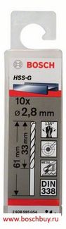 - Bosch Набор 10 HSS-G сверл 2,8 мм DIN 338 (2608595054 , 2.608.595.054) по выгодной цене 435 р. руб.;