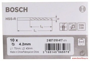 - Bosch Набор 10 HSS-R Сверл по металлу 4,2х43 мм (2607018417 , 2.607.018.417) в каталоге Сверла в России;