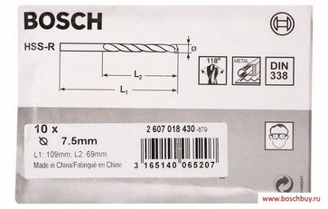 - Bosch Набор 10 HSS-R Сверл по металлу 7,5х6 мм (2607018430 , 2.607.018.430) в каталоге Сверла в России;