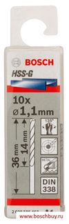 - Bosch Набор 10 сверл по металлу HSS-G 1,1 мм DIN 338 (2608585467 , 2.608.585.467) по выгодной цене 316 р. руб.;