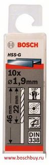- Bosch Набор 10 сверл по металлу HSS-G 1,9 мм DIN 338 (2608585474 , 2.608.585.474) по выгодной цене 316 р. руб.;