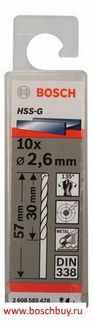 - Bosch Набор 10 сверл по металлу HSS-G 2,6 мм DIN 338 (2608585478 , 2.608.585.478) в каталоге Сверла в России;