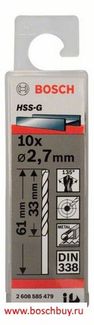 - Bosch Набор 10 сверл по металлу HSS-G 2,7 мм DIN 338 (2608585479 , 2.608.585.479) по выгодной цене 435 р. руб.;