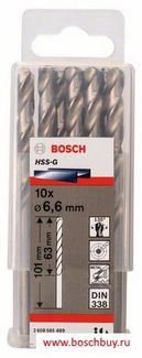 - Bosch Набор 10 сверл по металлу HSS-G 6,6 мм DIN 338 (2608585499 , 2.608.585.499) по выгодной цене 1 169 р. руб.;