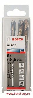 Bosch Набор 5 HSS-Co сверл 8,5 мм DIN 338 (2608585895 , 2.608.585.895)