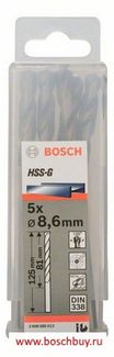 - Bosch Набор 5 сверл по металлу HSS-G 8,6 мм DIN 338 (2608585512 , 2.608.585.512) по выгодной цене 949 р. руб.;