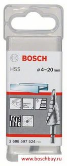 - Bosch Ступенчатое сверло Bosch HSS 4-20 мм 9 ступеней (2608597524 , 2.608.597.524) по выгодной цене 3 734 р. руб.;