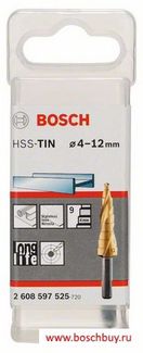 - Bosch Ступенчатое сверло HSS-TiN 4-12 мм (2608597525 , 2.608.597.525) по выгодной цене 3 175 р. руб.;